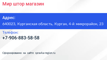 Мир штор, магазин по адресу 640023, Курганская область, Курган, 4-й микрорайон, 23 в дальнейшем Организация, размещена в следующих категориях: