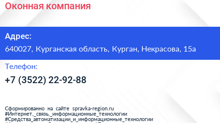 Оконная компания по адресу 640027, Курганская область, Курган, Некрасова, 15а в дальнейшем Организация, размещена в следующих категориях: