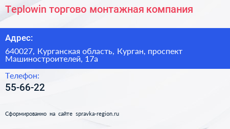 Teplowin, торгово-монтажная компания по адресу 640027, Курганская область, Курган, проспект Машиностроителей, 17а в дальнейшем Организация, размещена в следующих категориях:
