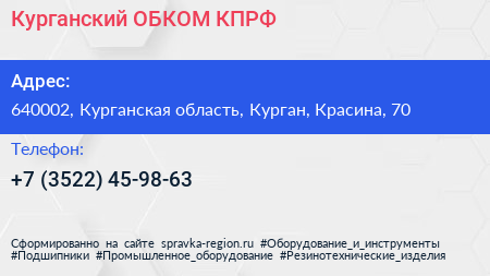 Курганский ОБКОМ КПРФ по адресу 640002, Курганская область, Курган, Красина, 70 в дальнейшем Организация, размещена в следующих категориях: