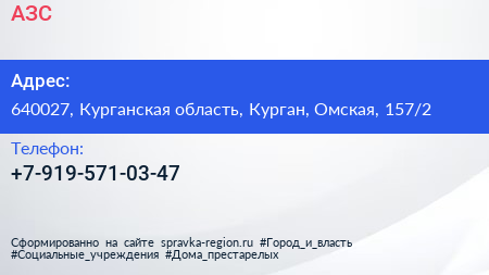 АЗС по адресу 640027, Курганская область, Курган, Омская, 157/2 в дальнейшем Организация, размещена в следующих категориях:
