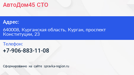 АвтоДом45, СТО по адресу 640008, Курганская область, Курган, проспект Конституции, 23 в дальнейшем Организация, размещена в следующих категориях: