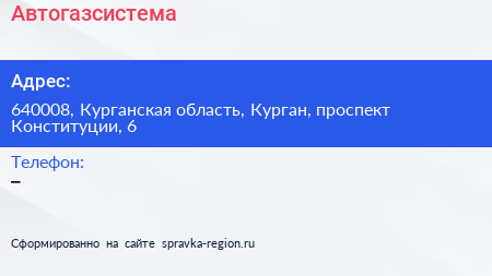 Автогазсистема по адресу 640008, Курганская область, Курган, проспект Конституции, 6 в дальнейшем Организация, размещена в следующих категориях: