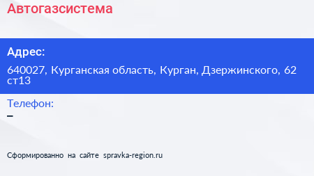 Автогазсистема по адресу 640027, Курганская область, Курган, Дзержинского, 62 ст13 в дальнейшем Организация, размещена в следующих категориях: