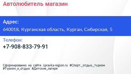 Автолюбитель, магазин по адресу 640018, Курганская область, Курган, Сибирская, 5 в дальнейшем Организация, размещена в следующих категориях: