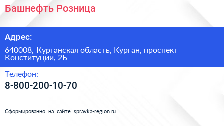 Башнефть-Розница по адресу 640008, Курганская область, Курган, проспект Конституции, 2Б в дальнейшем Организация, размещена в следующих категориях: