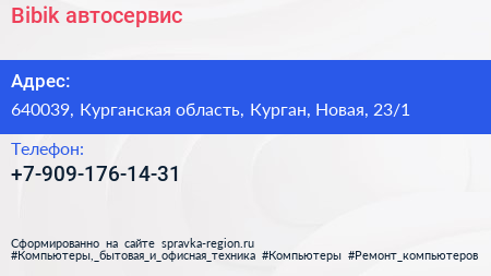 Bibik, автосервис по адресу 640039, Курганская область, Курган, Новая, 23/1 в дальнейшем Организация, размещена в следующих категориях: