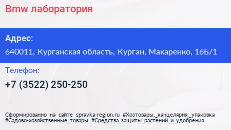 Bmw, лаборатория по адресу 640011, Курганская область, Курган, Макаренко, 16Б/1 в дальнейшем Организация, размещена в следующих категориях: