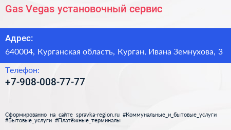 Gas Vegas, установочный сервис по адресу 640004, Курганская область, Курган, Ивана Земнухова, 3 в дальнейшем Организация, размещена в следующих категориях: