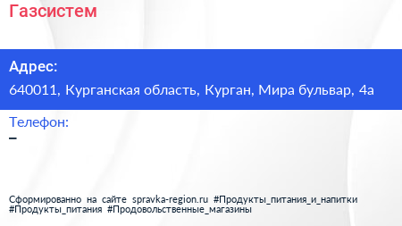 Газсистем по адресу 640011, Курганская область, Курган, Мира бульвар, 4а в дальнейшем Организация, размещена в следующих категориях: