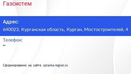 Газсистем по адресу 640023, Курганская область, Курган, Мостостроителей, 4 в дальнейшем Организация, размещена в следующих категориях: