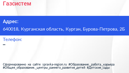 Газсистем по адресу 640018, Курганская область, Курган, Бурова-Петрова, 2Б в дальнейшем Организация, размещена в следующих категориях: