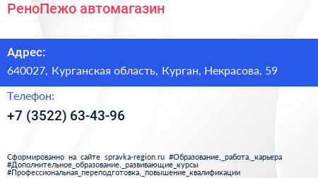 РеноПежо, автомагазин по адресу 640027, Курганская область, Курган, Некрасова, 59 в дальнейшем Организация, размещена в следующих категориях:
