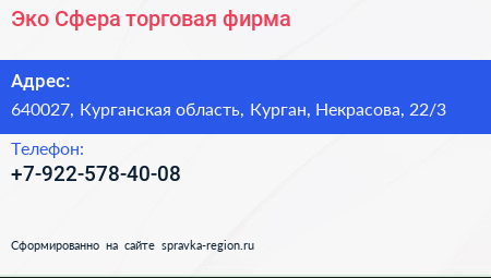 Эко-Сфера, торговая фирма по адресу 640027, Курганская область, Курган, Некрасова, 22/3 в дальнейшем Организация, размещена в следующих категориях: