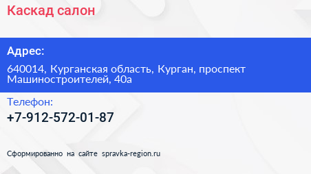 Каскад, салон по адресу 640014, Курганская область, Курган, проспект Машиностроителей, 40а в дальнейшем Организация, размещена в следующих категориях: