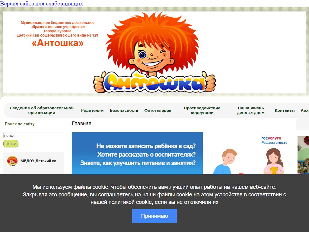 Детский сад №129 Антошка по адресу 640023, Курганская область, Курган, 1-й микрорайон, 34 в дальнейшем Организация, размещена в следующих категориях:
