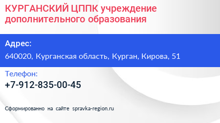 КУРГАНСКИЙ ЦППК, учреждение дополнительного образования по адресу 640020, Курганская область, Курган, Кирова, 51 в дальнейшем Организация, размещена в следующих категориях: