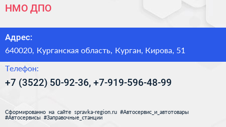 НМО-ДПО по адресу 640020, Курганская область, Курган, Кирова, 51 в дальнейшем Организация, размещена в следующих категориях: