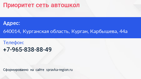 Приоритет, сеть автошкол по адресу 640014, Курганская область, Курган, Карбышева, 44а в дальнейшем Организация, размещена в следующих категориях: