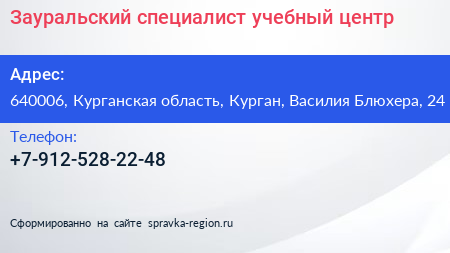 Зауральский специалист, учебный центр по адресу 640006, Курганская область, Курган, Василия Блюхера, 24 в дальнейшем Организация, размещена в следующих категориях: