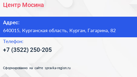 Центр Мосина по адресу 640015, Курганская область, Курган, Гагарина, 82 в дальнейшем Организация, размещена в следующих категориях: