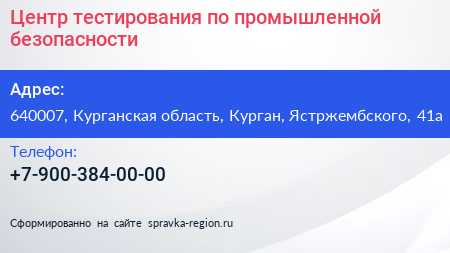 Центр тестирования по промышленной безопасности по адресу 640007, Курганская область, Курган, Ястржембского, 41а в дальнейшем Организация, размещена в следующих категориях: