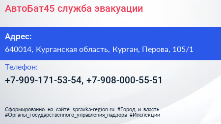 АвтоБат45, служба эвакуации по адресу 640014, Курганская область, Курган, Перова, 105/1 в дальнейшем Организация, размещена в следующих категориях: