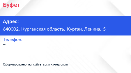 Буфет по адресу 640002, Курганская область, Курган, Ленина, 5 в дальнейшем Организация, размещена в следующих категориях: