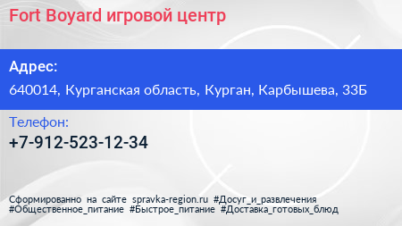 Fort Boyard, игровой центр по адресу 640014, Курганская область, Курган, Карбышева, 33Б в дальнейшем Организация, размещена в следующих категориях: