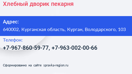 Хлебный дворик, пекарня по адресу 640002, Курганская область, Курган, Володарского, 103 в дальнейшем Организация, размещена в следующих категориях:
