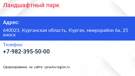 Ландшафтный парк по адресу 640023, Курганская область, Курган, микрорайон 6а, 25 киоск в дальнейшем Организация, размещена в следующих категориях: