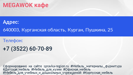 MEGAWOK, кафе по адресу 640003, Курганская область, Курган, Пушкина, 25 в дальнейшем Организация, размещена в следующих категориях: