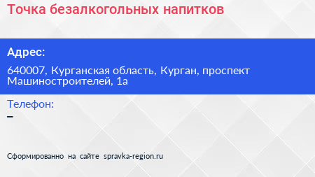 Точка безалкогольных напитков по адресу 640007, Курганская область, Курган, проспект Машиностроителей, 1а в дальнейшем Организация, размещена в следующих категориях: