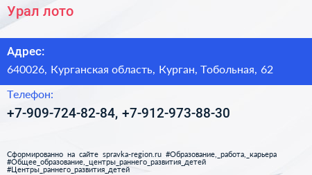 Урал лото по адресу 640026, Курганская область, Курган, Тобольная, 62 в дальнейшем Организация, размещена в следующих категориях: