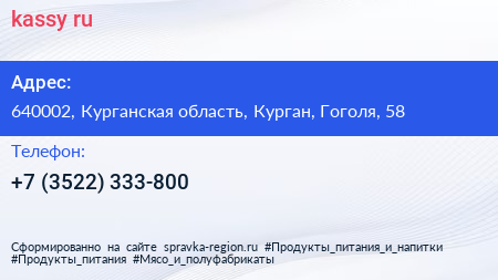 kassy.ru по адресу 640002, Курганская область, Курган, Гоголя, 58 в дальнейшем Организация, размещена в следующих категориях: