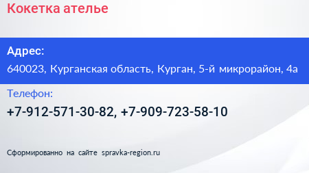 Кокетка, ателье по адресу 640023, Курганская область, Курган, 5-й микрорайон, 4а в дальнейшем Организация, размещена в следующих категориях: