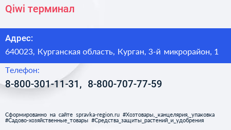 Qiwi, терминал по адресу 640023, Курганская область, Курган, 3-й микрорайон, 1 в дальнейшем Организация, размещена в следующих категориях: