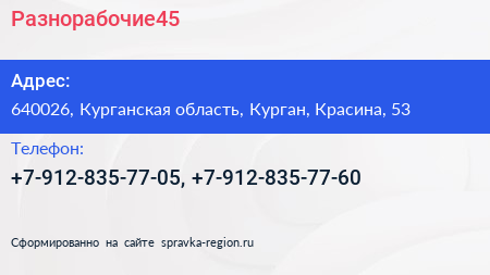 Разнорабочие45 по адресу 640026, Курганская область, Курган, Красина, 53 в дальнейшем Организация, размещена в следующих категориях: