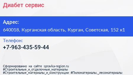 Диабет-сервис по адресу 640018, Курганская область, Курган, Советская, 152 к1 в дальнейшем Организация, размещена в следующих категориях: