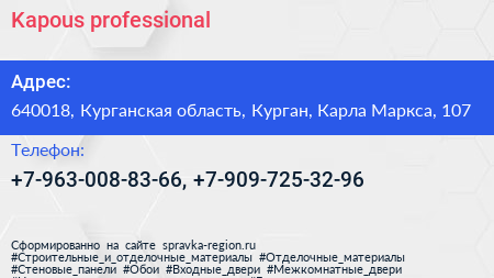 Kapous professional по адресу 640018, Курганская область, Курган, Карла Маркса, 107 в дальнейшем Организация, размещена в следующих категориях: