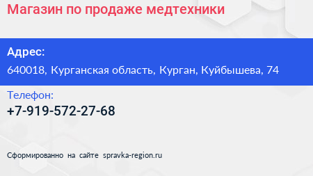 Магазин по продаже медтехники по адресу 640018, Курганская область, Курган, Куйбышева, 74 в дальнейшем Организация, размещена в следующих категориях: