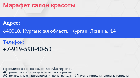 Марафет, салон красоты по адресу 640018, Курганская область, Курган, Ленина, 14 в дальнейшем Организация, размещена в следующих категориях: