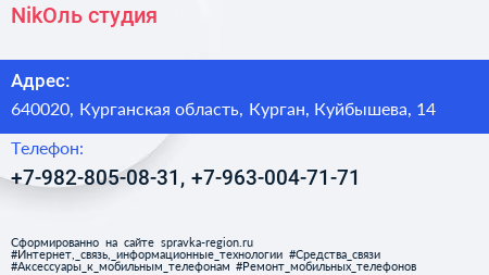 NikOль, студия по адресу 640020, Курганская область, Курган, Куйбышева, 14 в дальнейшем Организация, размещена в следующих категориях: