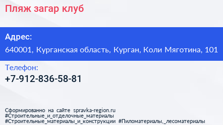 Пляж, загар-клуб по адресу 640001, Курганская область, Курган, Коли Мяготина, 101 в дальнейшем Организация, размещена в следующих категориях: