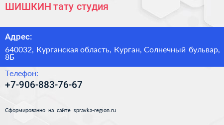 ШИШКИН, тату-студия по адресу 640032, Курганская область, Курган, Солнечный бульвар, 8Б в дальнейшем Организация, размещена в следующих категориях: