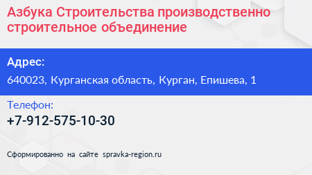 Азбука Строительства, производственно-строительное объединение по адресу 640023, Курганская область, Курган, Епишева, 1 в дальнейшем Организация, размещена в следующих категориях: