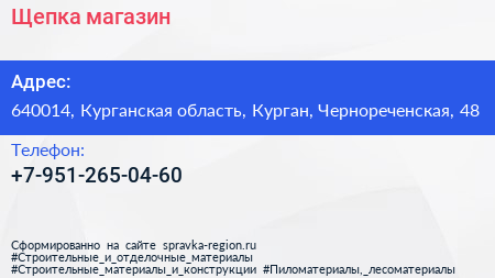 Щепка, магазин по адресу 640014, Курганская область, Курган, Чернореченская, 48 в дальнейшем Организация, размещена в следующих категориях: