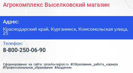 Агрокомплекс Выселковский, магазин по адресу Краснодарский край, Курганинск, Комсомольская улица, 25 в дальнейшем Организация, размещена в следующих категориях: