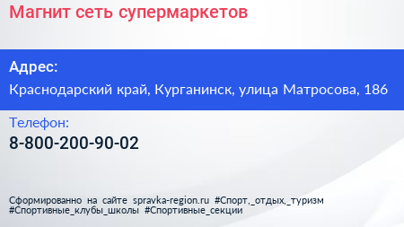Магнит, сеть супермаркетов по адресу Краснодарский край, Курганинск, улица Матросова, 186 в дальнейшем Организация, размещена в следующих категориях: