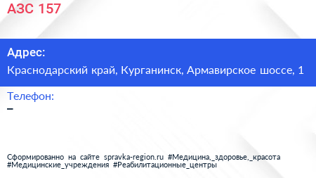 АЗС №157 по адресу Краснодарский край, Курганинск, Армавирское шоссе, 1 в дальнейшем Организация, размещена в следующих категориях: